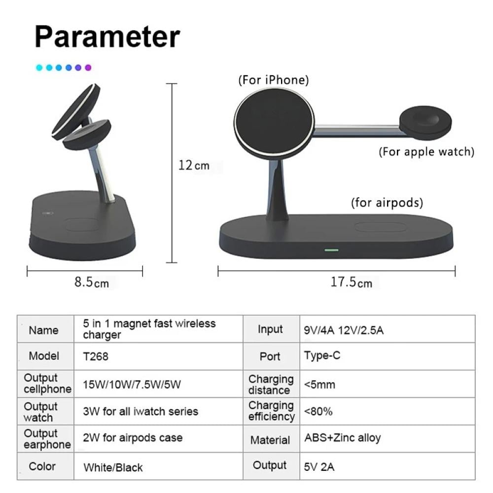 - دعم الشحن: ساعة أبل، هاتف iPhone 12 مغناطيسي، سماعات، هاتف محمول